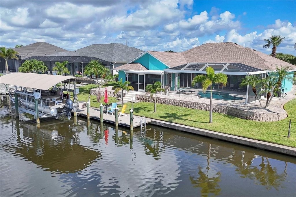 Key West North – Your Waterfront Escape in South Gulf Cove This move-in-ready coastal home is packed with premium features and major upgrades for ultimate peace of mind, comfort, and effortless waterfront living. A true boater’s paradise, it offers direct Gulf access, a 12,000 lb. boat lift with auto-stop, and an extended canopy frame and new canvas (2023). A private fish dock equipped with fish light and electric and water hookups makes it easy to clean your catch or gear up for a day on the water. The heated saltwater pool and spa, enclosed in a two-sided panoramic pool cage, are designed for year-round enjoyment, a covered BBQ patio, enhanced by a private pool bath and a smart system that allows remote control of lighting, temperature, and spa functions. The southeast-facing lanai delivers stunning sunrise views over intersecting canals—a truly serene backdrop. High-value updates include: • Newer roof (2022) with transferable warranty • HVAC system (2024) • Gutters (2023) • Pool cage screen (2023) Miami Dade Code Rated • Exterior paint (2022) & Interior Paint with Custom Murals in designer coastal tones • 22kW Generac generator with auto-switching backup power • Hurricane accordion shutters for storm protection with ease • Plantation shutters for timeless style and light control • 4-zone irrigation system • Lush St. Augustine grass and tropical landscaping And best of all—no flooding during recent hurricanes. Step inside and embrace the easy, breezy vibe of Key West North. The open floor plan features high ceilings, pocket sliders, and charming shiplap accents, offering a relaxed yet refined coastal feel throughout. Open up the doors and let the breeze into this home that is made for entertaining with split floor plan for guests and easy access to the huge kitchen and immense laundry room with a sink and extra storage. The primary suite is a private retreat with tranquil canal views, dual walk-in closets, and a spa-style bath featuring a zero-entry shower, dual vanities and soaking tub. Perfectly located just minutes from Manasota & Boca Grande, sugar-sand beaches, championship golf, dining, shopping, medical and Historic Downtown Dearborn with Farmers Markets and Festivals. This home brings together everything you love about Florida living—with all the big-ticket items already done. Ask for the features sheet for everything this home has at your fingertips. Check out the 360 Tour and Call NOW for your showing.